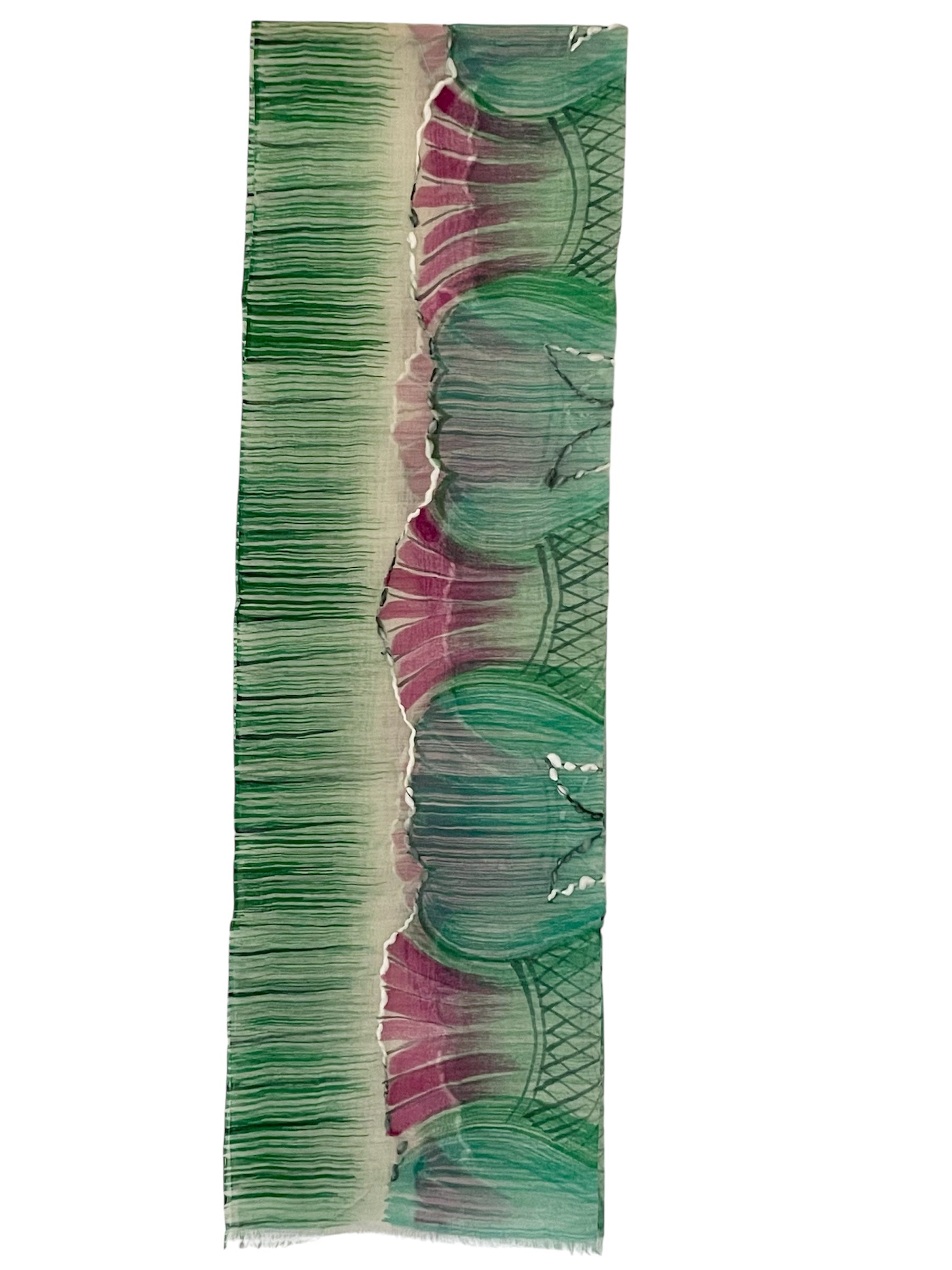 Aquamarine and Pink Scarf - Silk with Superfine wool blend