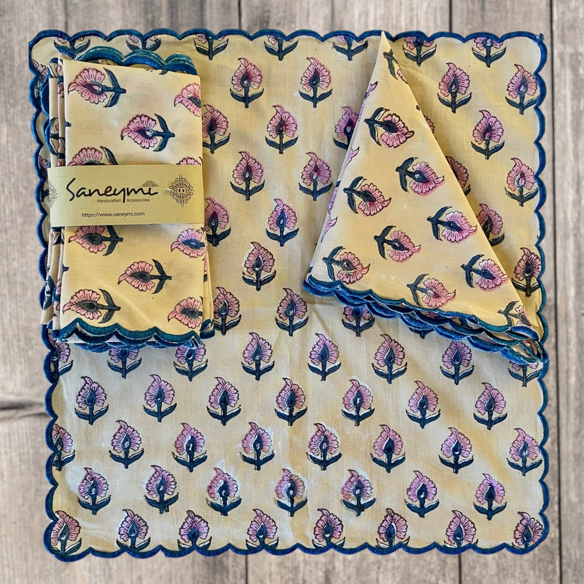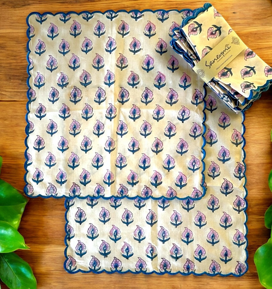 Add some cheerful elegance to your dining table with these hand block printed soft cotton table napkins.