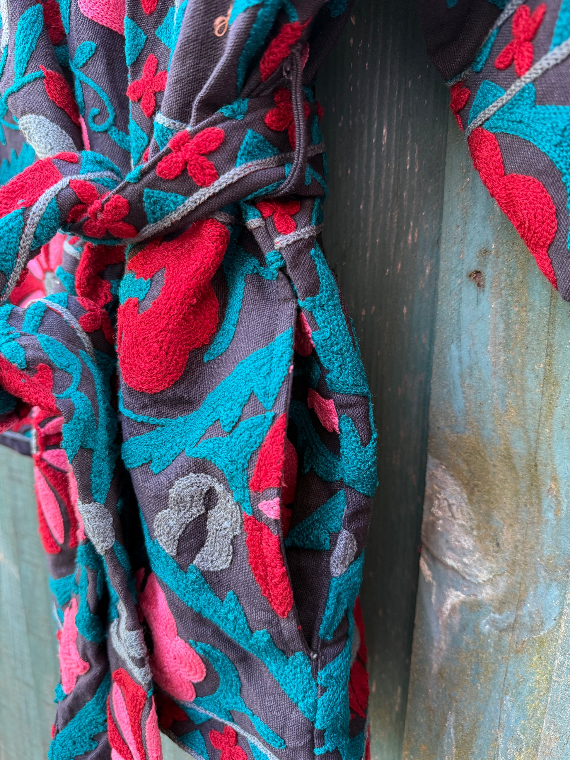 There’s something about Suzani embroidery, its vibrant threads and flowing motifs that instantly adds life to any fabric. This jacket celebrates that spirit of colour and craftsmanship.
